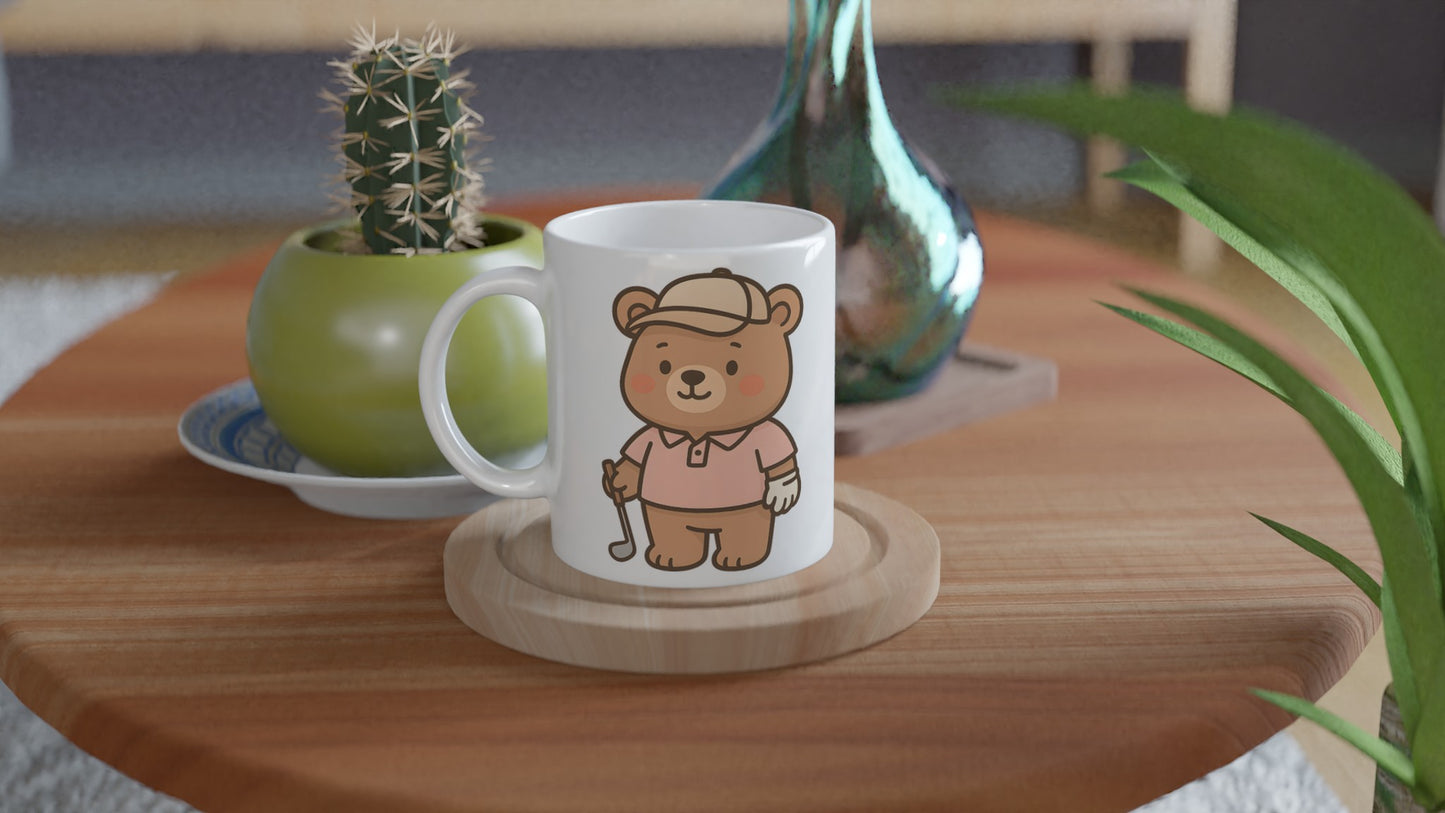 Björnens golfäventyr – mugg med tryck i stilren, tålig keramik. Perfekt för kaffeälskare som vill ha en personlig mugg med unikt motiv.Tål både diskmaskin och mikrovågsugn och passar lika bra hemma som på kontoret eller som present.