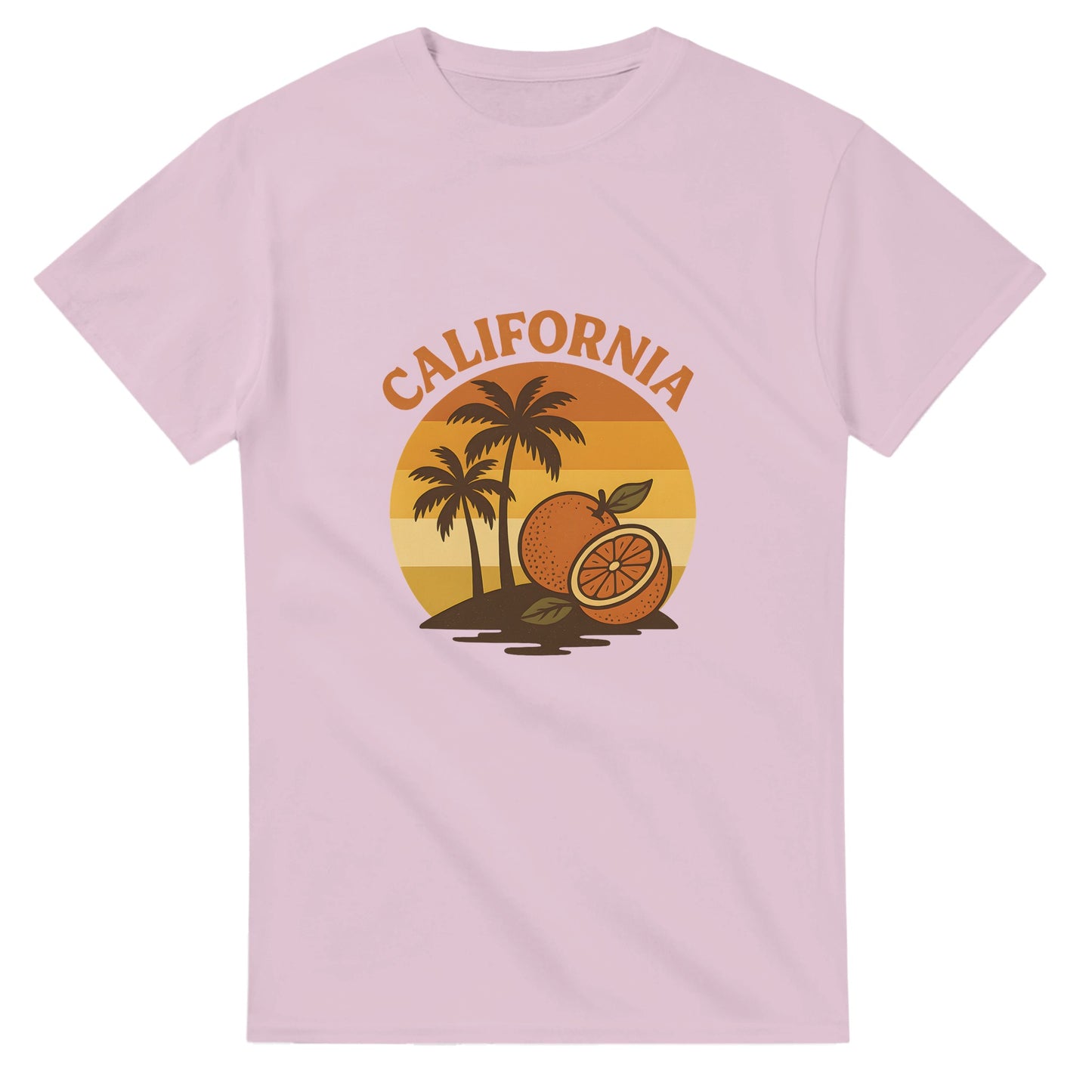 Fånga charmen i Kalifornien med en vintage design av palmer och citrus i solnedgångens ljus.