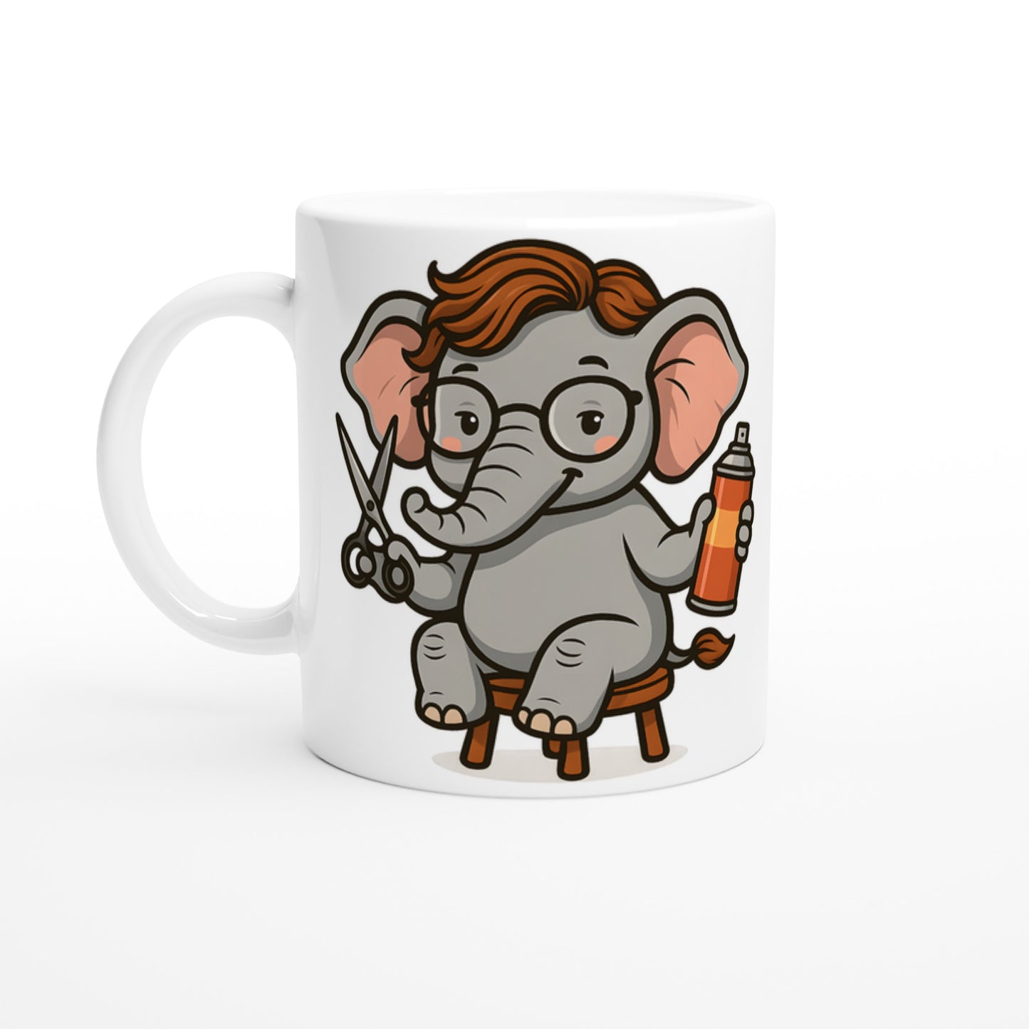 Elefanten som frisör, utrustad med sax och hårspray för stilfull elegans.