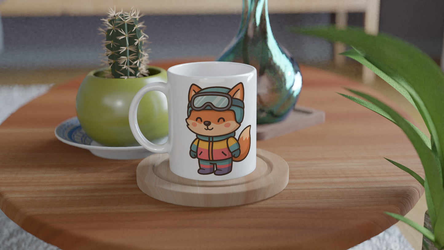 Färgglada Räven på Snöbräda – mugg med tryck i stilren, tålig keramik. Perfekt för kaffeälskare som vill ha en personlig mugg med unikt motiv.Tål både diskmaskin och mikrovågsugn och passar lika bra hemma som på kontoret eller som present.