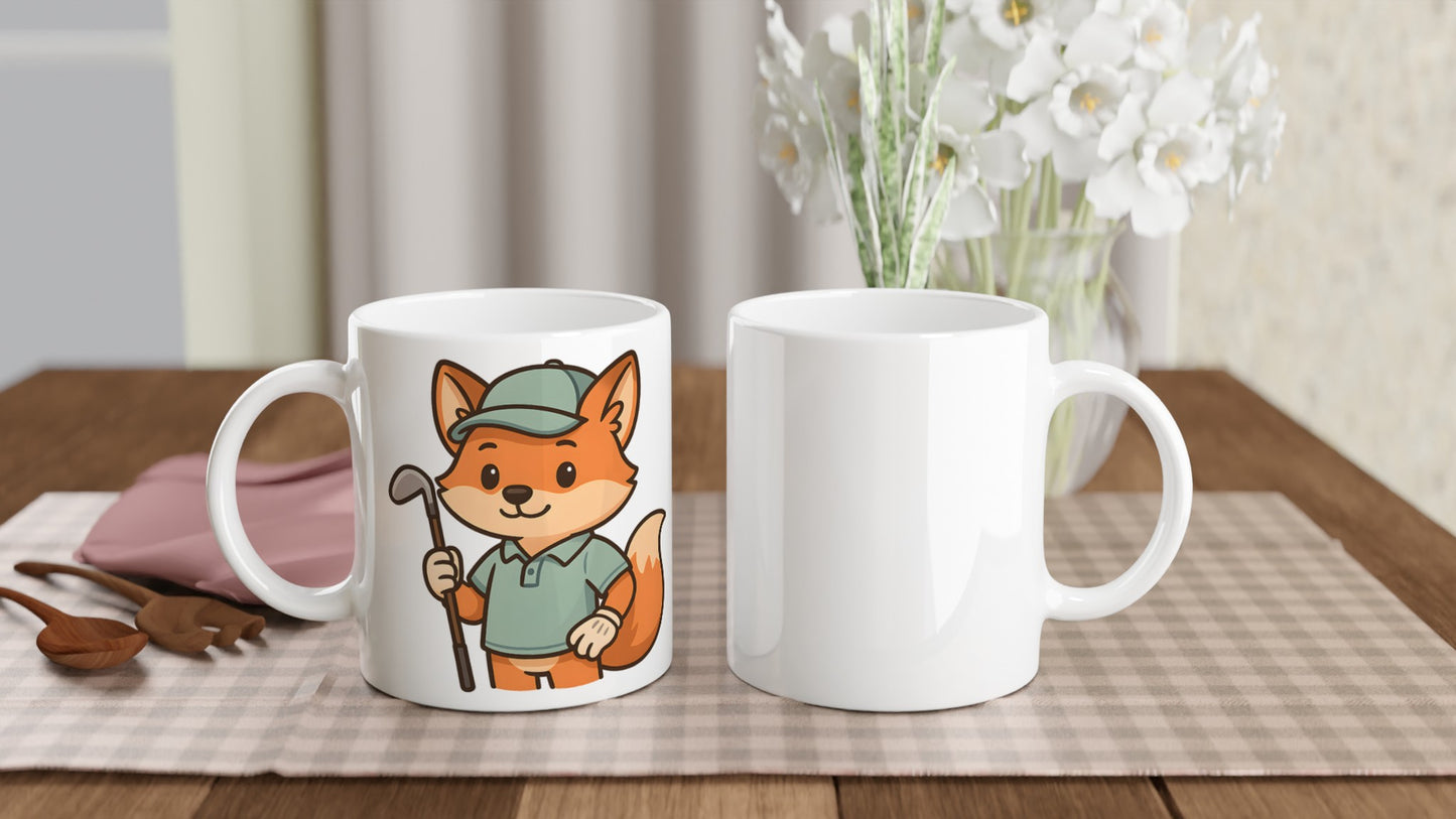 Golfande räv på mugg – mugg med tryck i stilren, tålig keramik. Perfekt för kaffeälskare som vill ha en personlig mugg med unikt motiv.Tål både diskmaskin och mikrovågsugn och passar lika bra hemma som på kontoret eller som present.