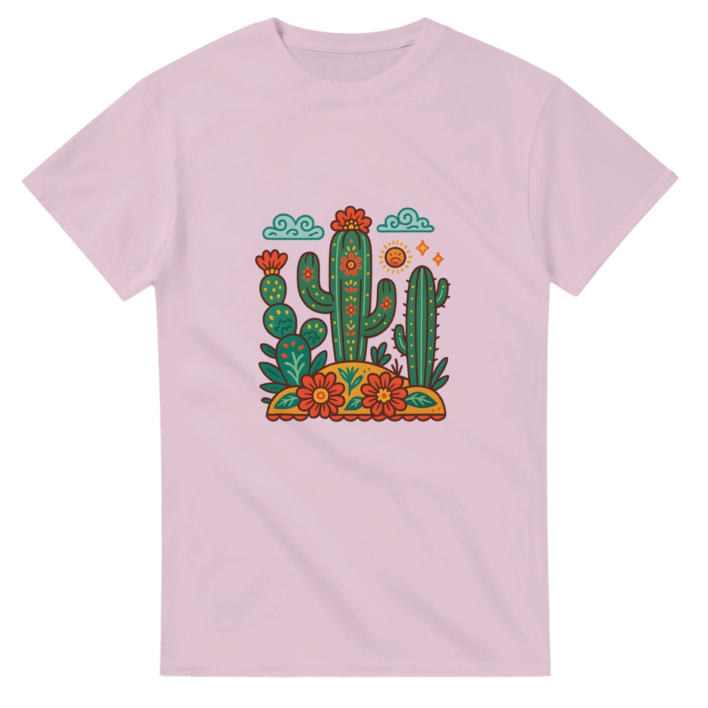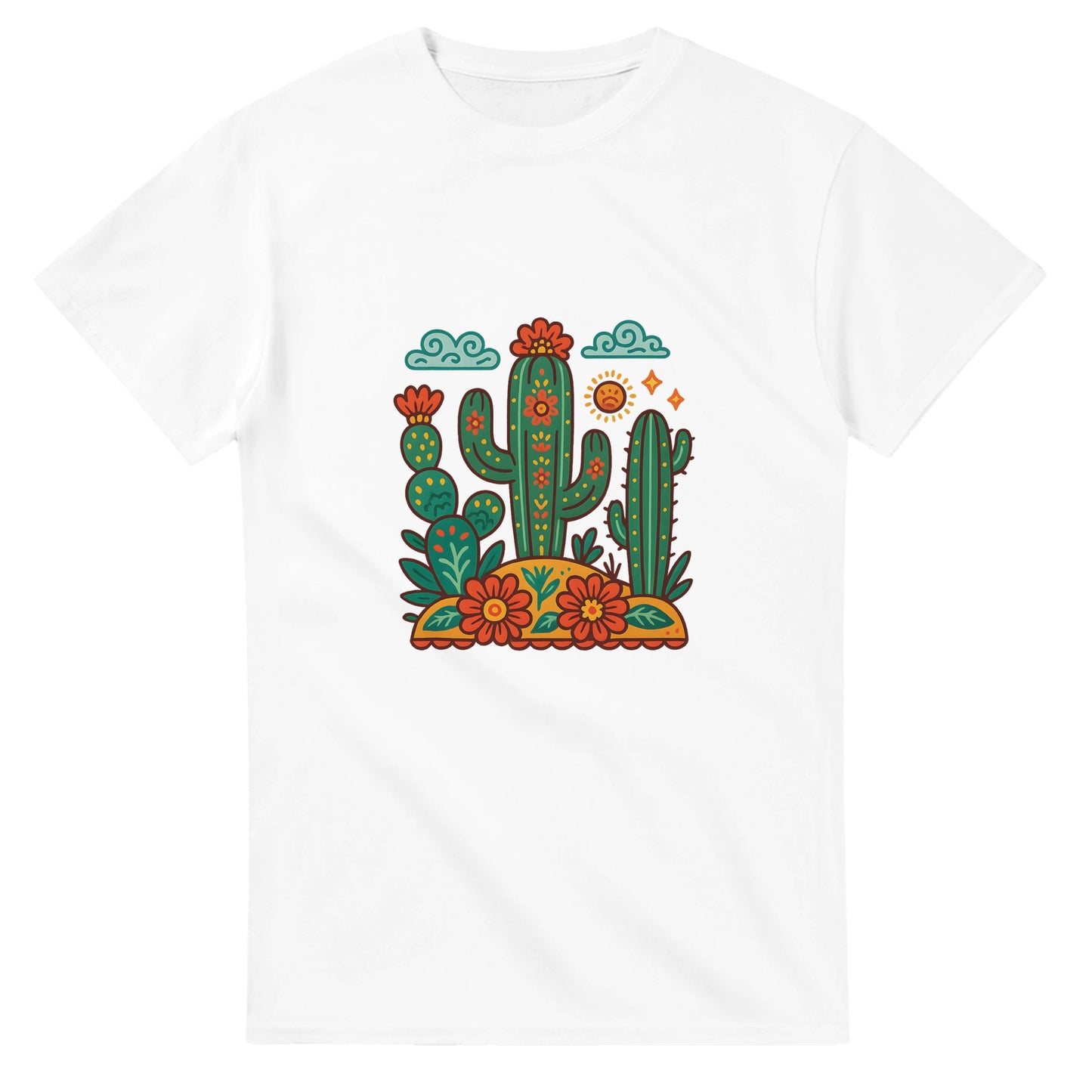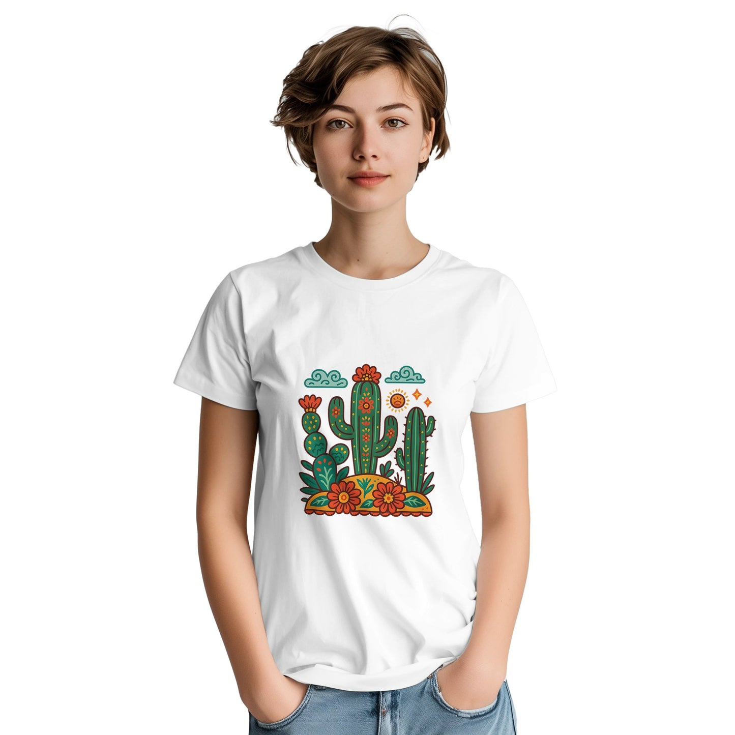Utforska Mexikos skönhet med ett vintage kaktusmotiv och folkart-inspirerade detaljer.
