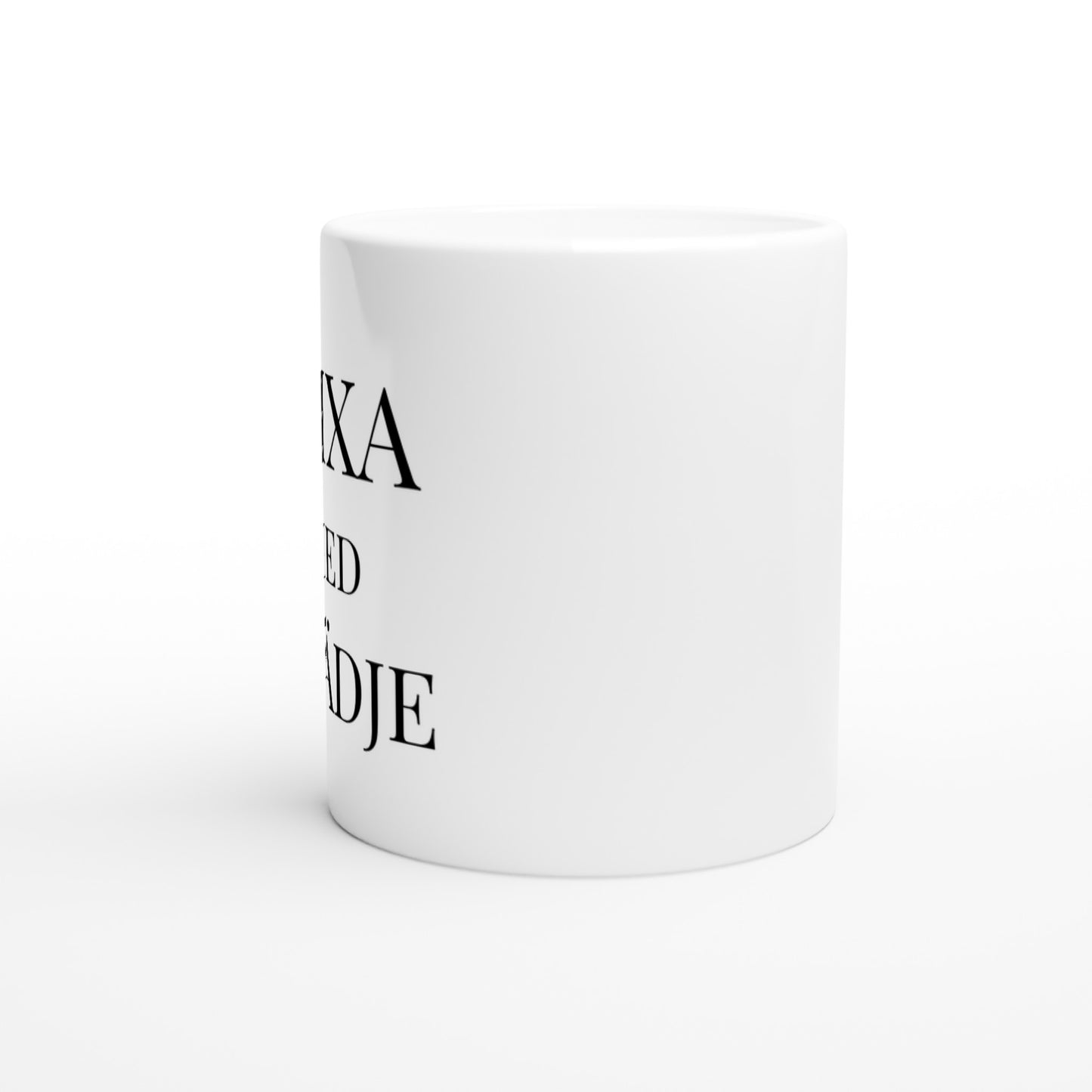 Mixa Med Glädje – mugg med tryck i stilren, tålig keramik. Perfekt för kaffeälskare som vill ha en personlig mugg med unikt motiv.Tål både diskmaskin och mikrovågsugn och passar lika bra hemma som på kontoret eller som present.