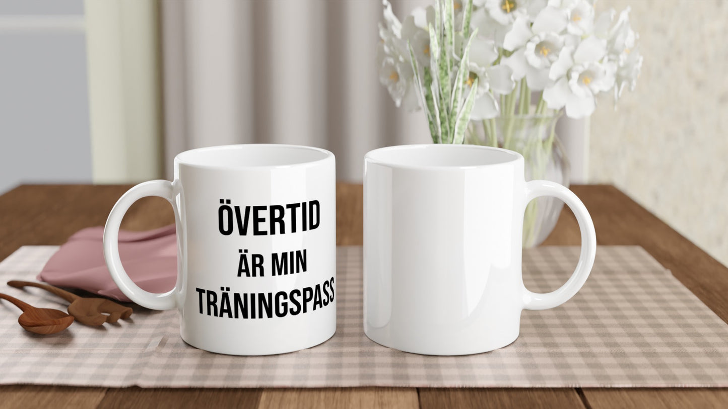 Övertidens Magi – mugg med tryck i stilren, tålig keramik. Perfekt för kaffeälskare som vill ha en personlig mugg med unikt motiv.Tål både diskmaskin och mikrovågsugn och passar lika bra hemma som på kontoret eller som present.