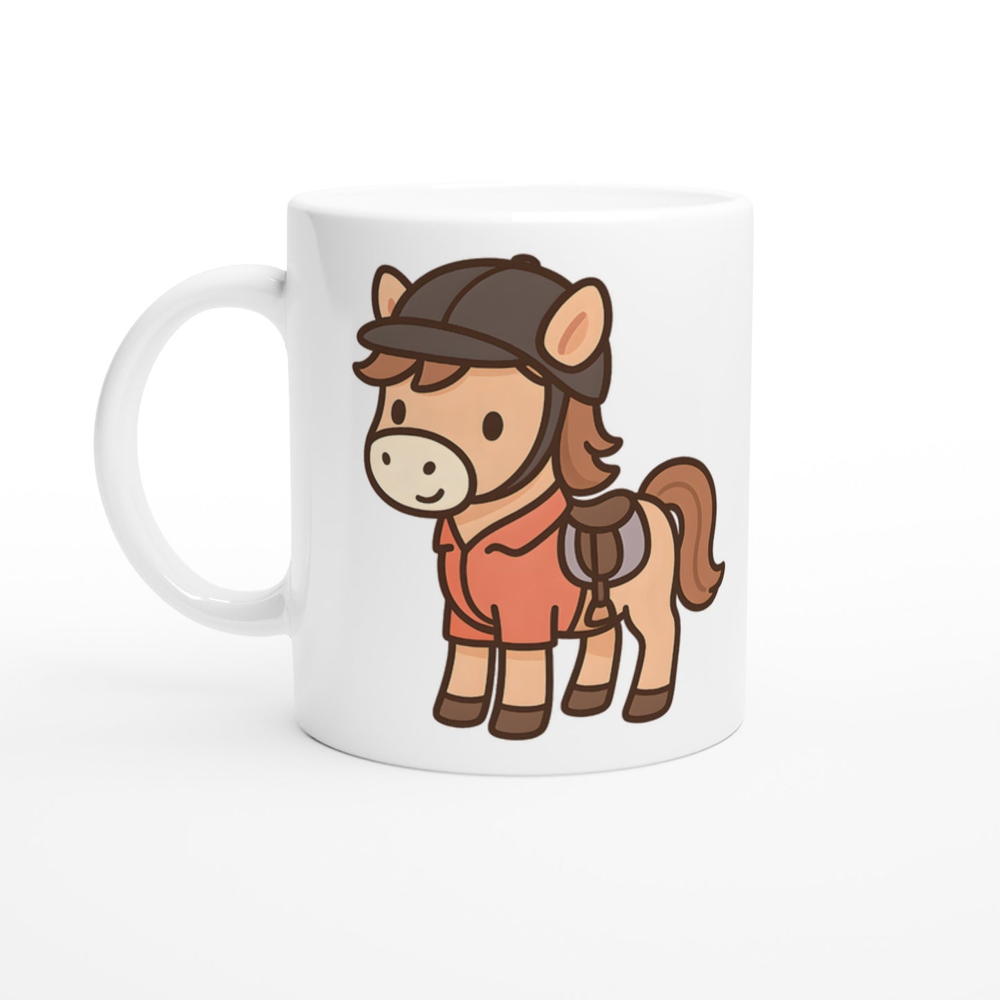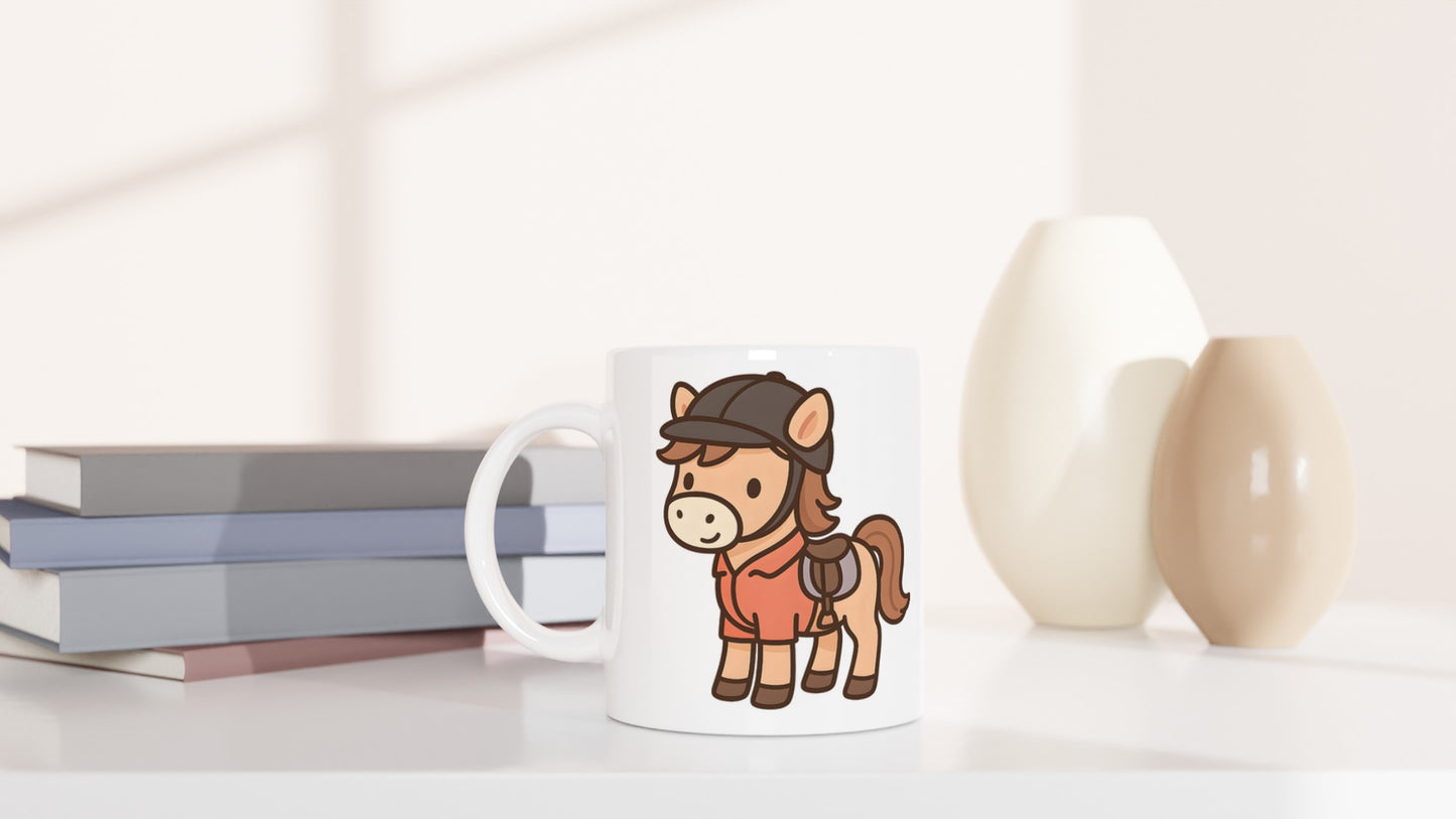 Ponny i Ridmundering – mugg med tryck i stilren, tålig keramik. Perfekt för kaffeälskare som vill ha en personlig mugg med unikt motiv.Tål både diskmaskin och mikrovågsugn och passar lika bra hemma som på kontoret eller som present.