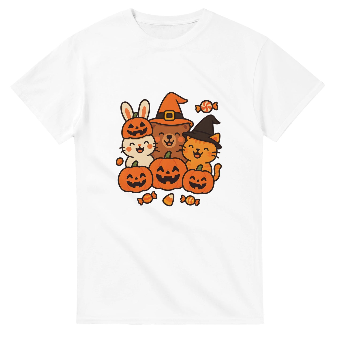 Fira Halloween med söta djur och pumpor som sprider glädje. En perfekt T-shirt för höstmys.