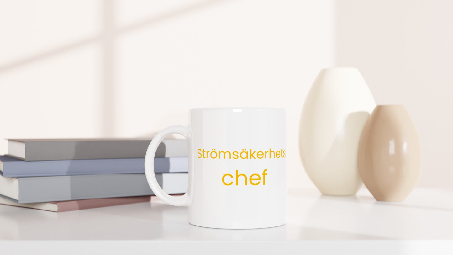 Strömsäkerhetschef – mugg med tryck i stilren, tålig keramik. Perfekt för kaffeälskare som vill ha en personlig mugg med unikt motiv.Tål både diskmaskin och mikrovågsugn och passar lika bra hemma som på kontoret eller som present.