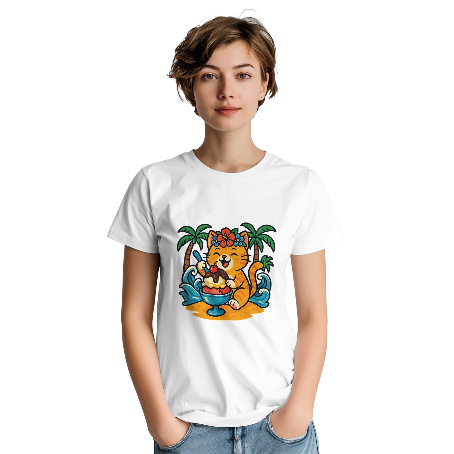 Tropical Kitty Sundae – t-shirt med tryck i mjuk och slitstark bomull. Klassisk unisex-passform som passar både vardag och fritid. Tillverkad i premium heavyweight-bomull för hållbarhet och komfort.Ett perfekt val för dig som vill ha en unik t-shirt eller ge bort en personlig present.