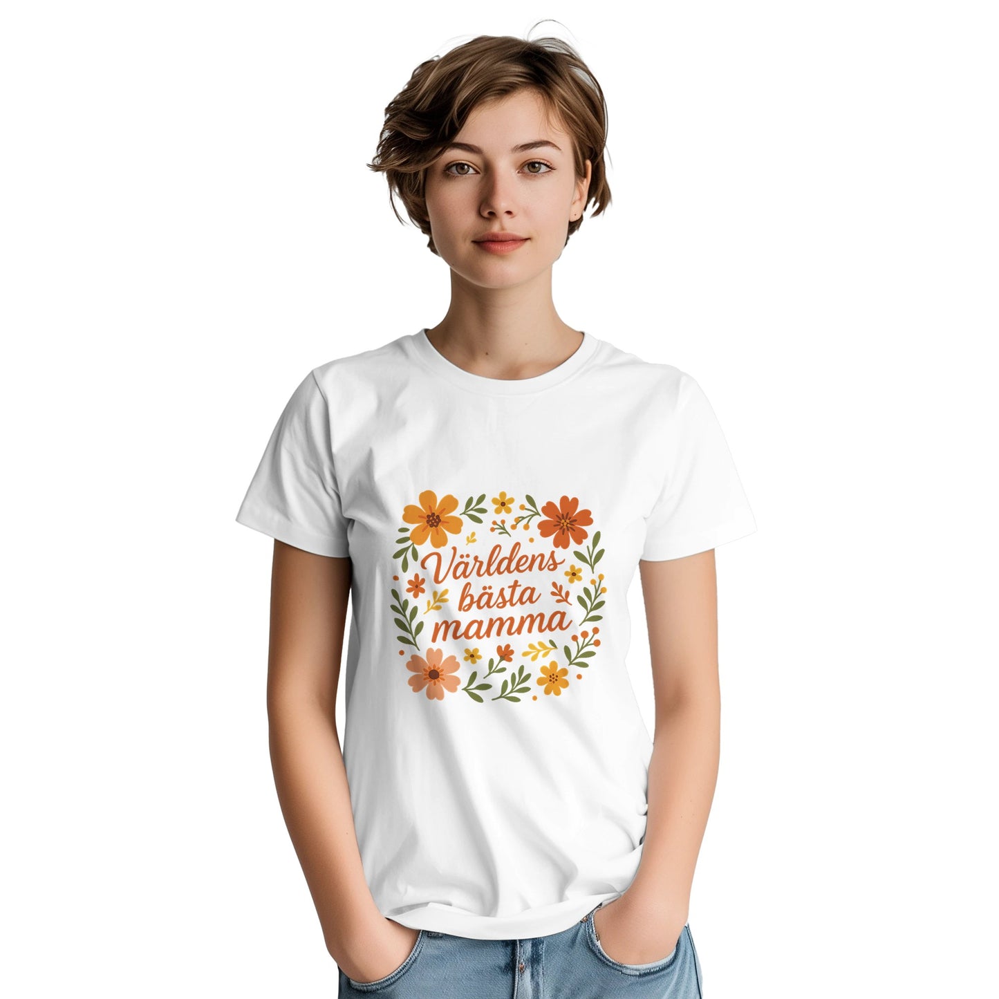 Världens Bästa Mamma - Blomsterprydnad – t-shirt med tryck i mjuk och slitstark bomull. Klassisk unisex-passform som passar både vardag och fritid. Tillverkad i premium heavyweight-bomull för hållbarhet och komfort.Ett perfekt val för dig som vill ha en unik t-shirt eller ge bort en personlig present.